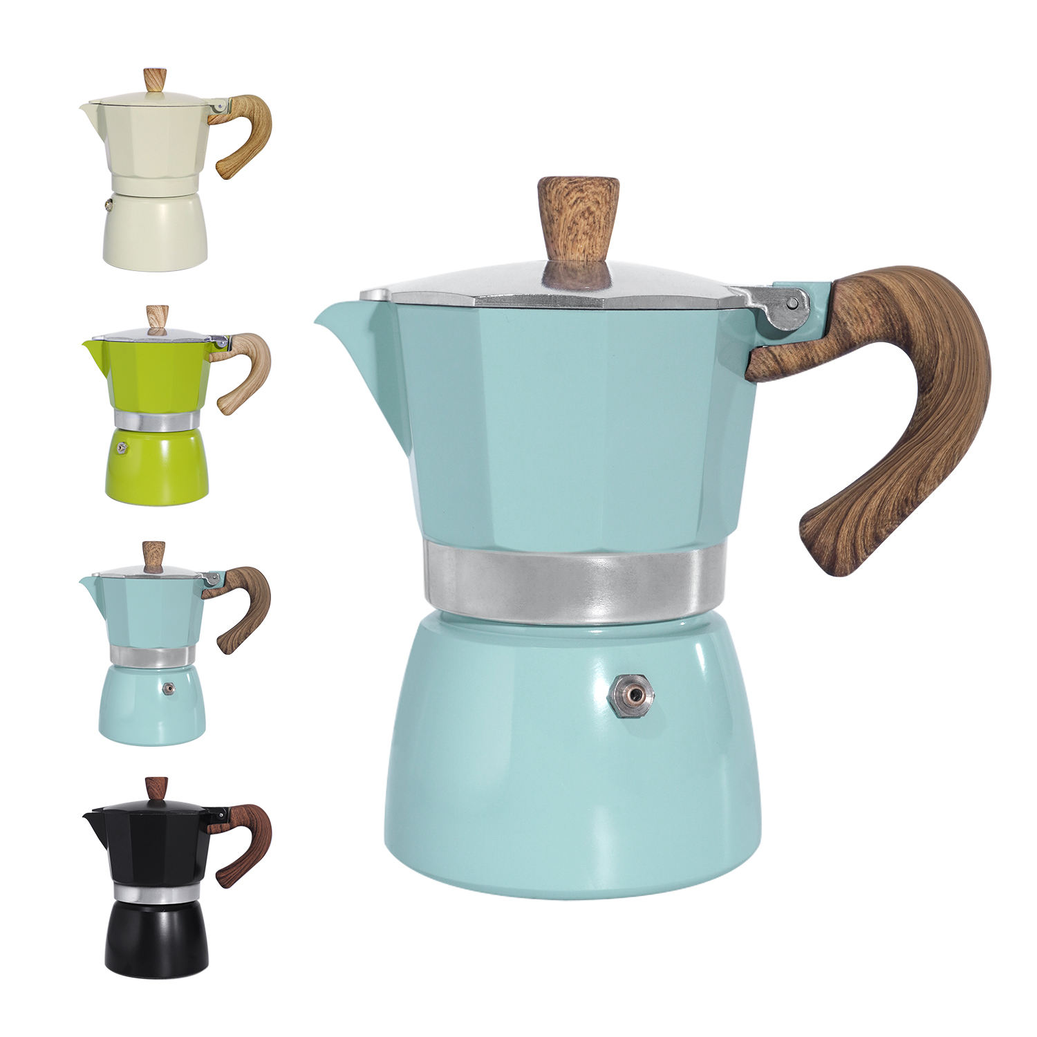 Moka Coffee Pot Aluminum Induction 6Cup, Stovetop Espresso Coffee Maker,Classic Italian Aluminum Moka Pot With Wood Handle